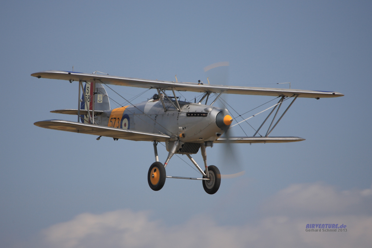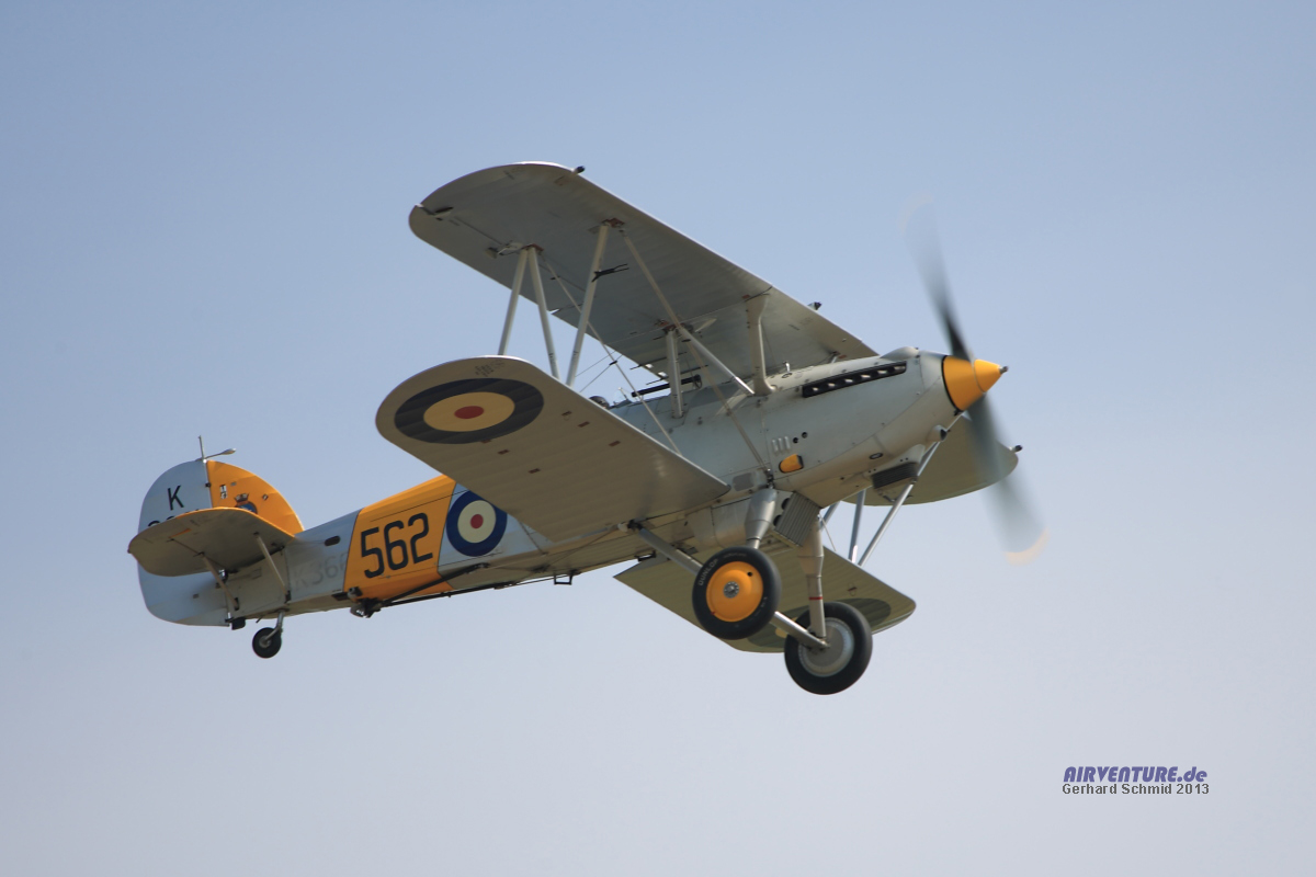 Ein Rolls Royce Kestrel Motor dreht den Propeller dieser 1932 gebauten Hawker Nimrod I, die seit 2004 zur Sammlung der Fighter Collection gehört. |