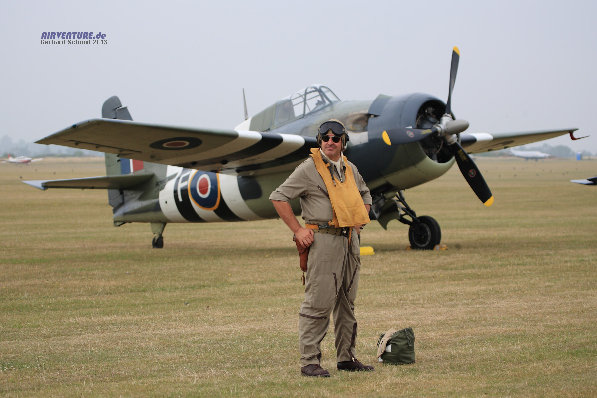 Gut bewacht von einem Re-Enactor in originaler Pilotenbekleidung: Die FM2 Wildcat der Fighter Collection. |