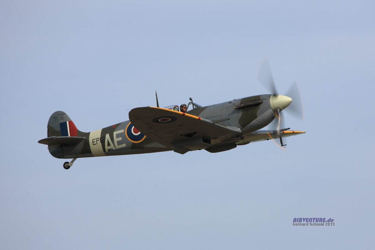 Überflug der "Bremont Horsemen". Die Spitfire Mk XIVE der Fighter Collection rollt zum Rollhalt Rwy 06. |