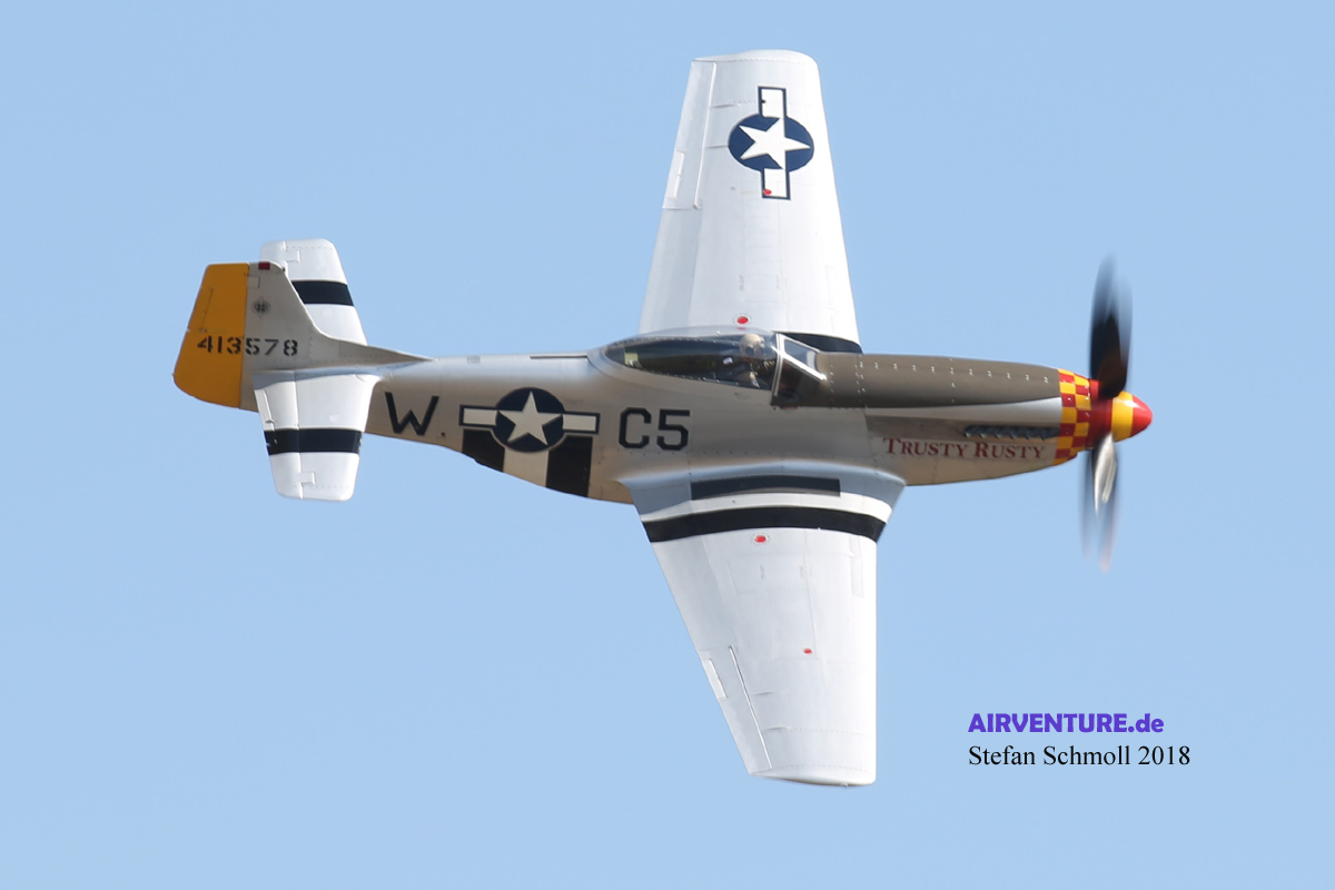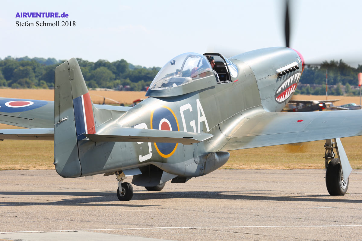 "The Shark" ist eine von vier teilnehmenden North-American P-51 Mustang. In den letzten Jahren haben einige das Land verlassen. Die jetzt als G-SHWN zugelassene Maschine ist vielen Fans noch als "Old Crow" bekannt.