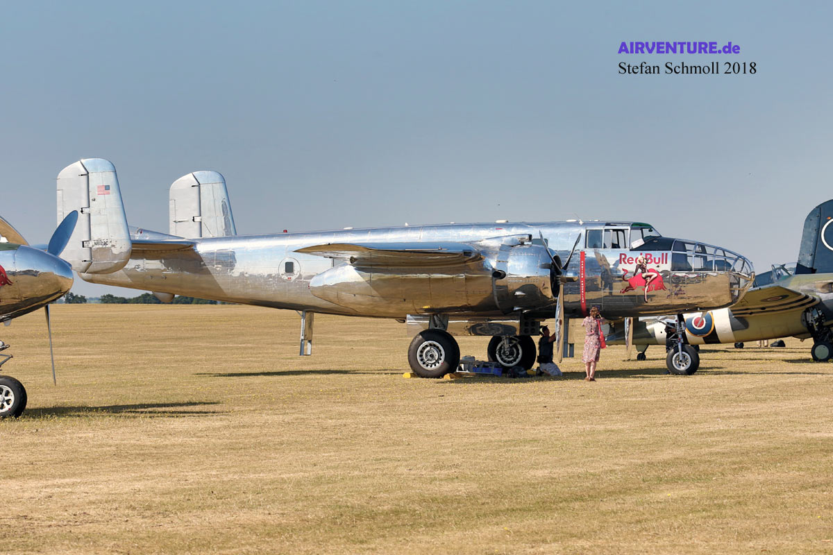 Und auch die polierte North-American B-25 glänzte mit der P-38 in der Sommersonne um die Wette. Infos zur genialen Sammlung von fliegenden Klassikern finden Sie hier https://www.flyingbulls.at/de/ |