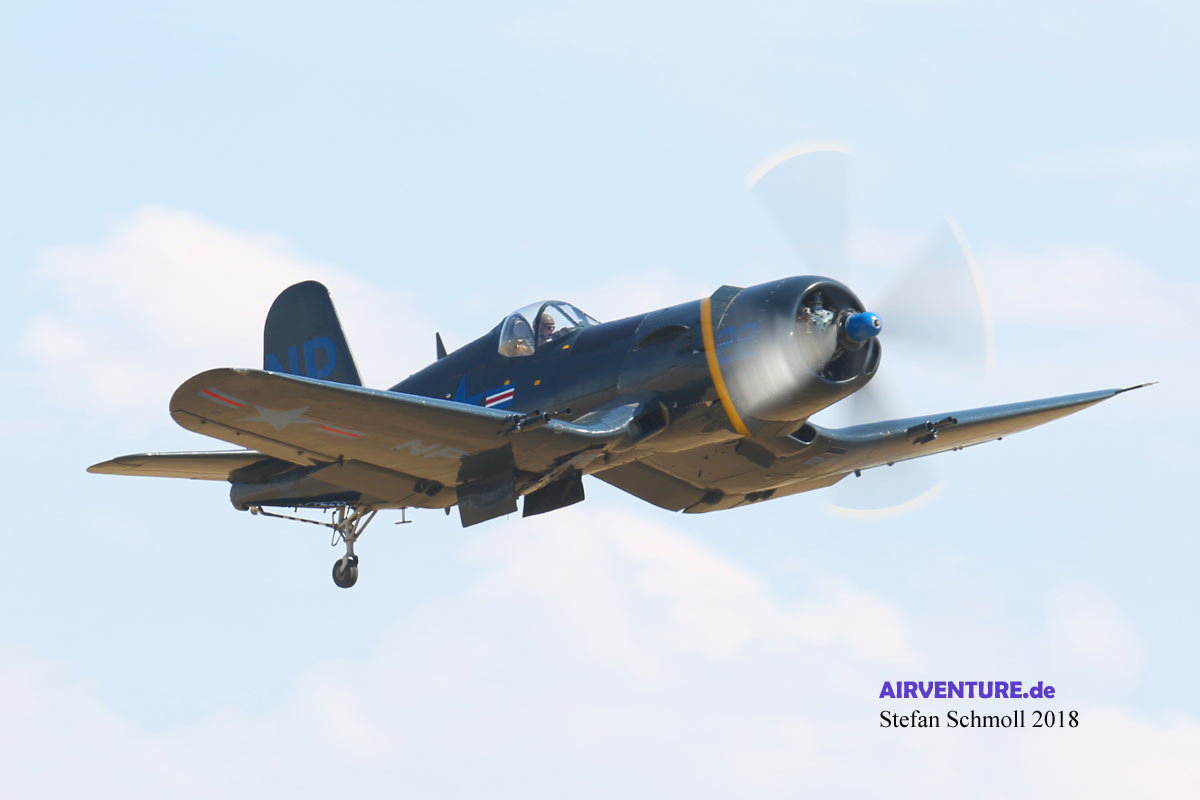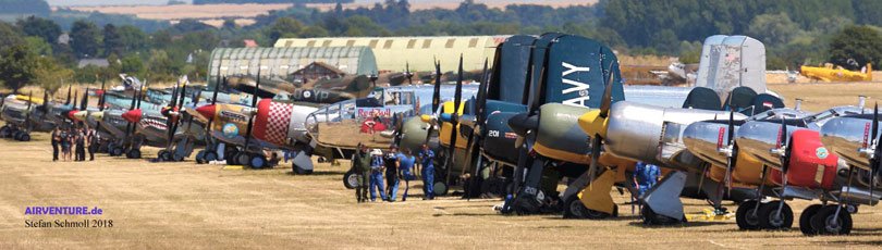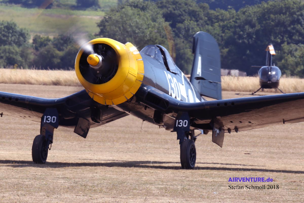 Aber auch die 1951 gebaute F4-U5N ist ein alter Hase als Warbird. Sie kam ebenfalls 1986 im Container aus den Vereinigten Staaten - allerdings mit Ziel La Ferté Alais südlich von Paris. Nach langer Renovation flog sie in diesem Frühjahr erstmals wieder. |