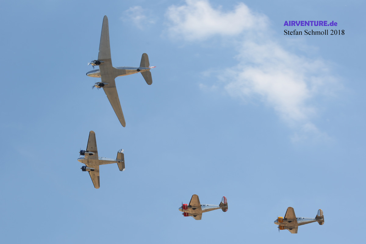 Aus der Schweiz kam erneut die http://www.classicformation.com/ nach Duxford. Im letzten Jahr hat die Gruppe des Entrepreneurs Hugo Mathys aufgestockt und eine dritte Beech 18 erworben - und so die gelungene Darbietung noch verbessert. |