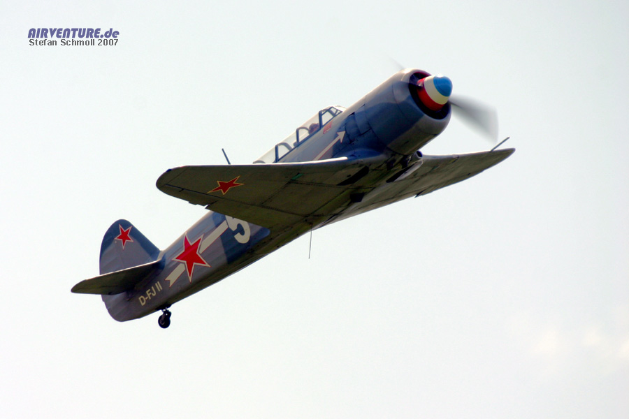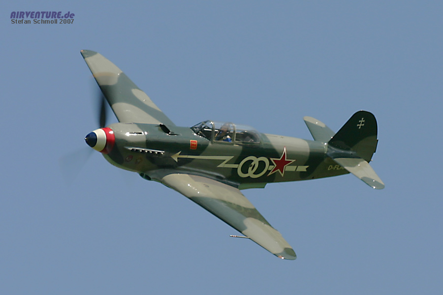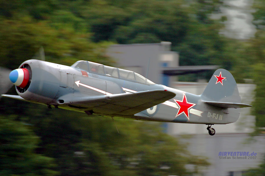 Die klassische Variante der Yak-11 wurde in Freiburg durch die ebenfalls ortsansässige D-FJII repräsentiert. Beinahe alle weltweit heute fliegenden Exemplare wurden Anfang der achtziger Jahre von der Salis Collection aus Ägypten nach Frankreich übernommen. |