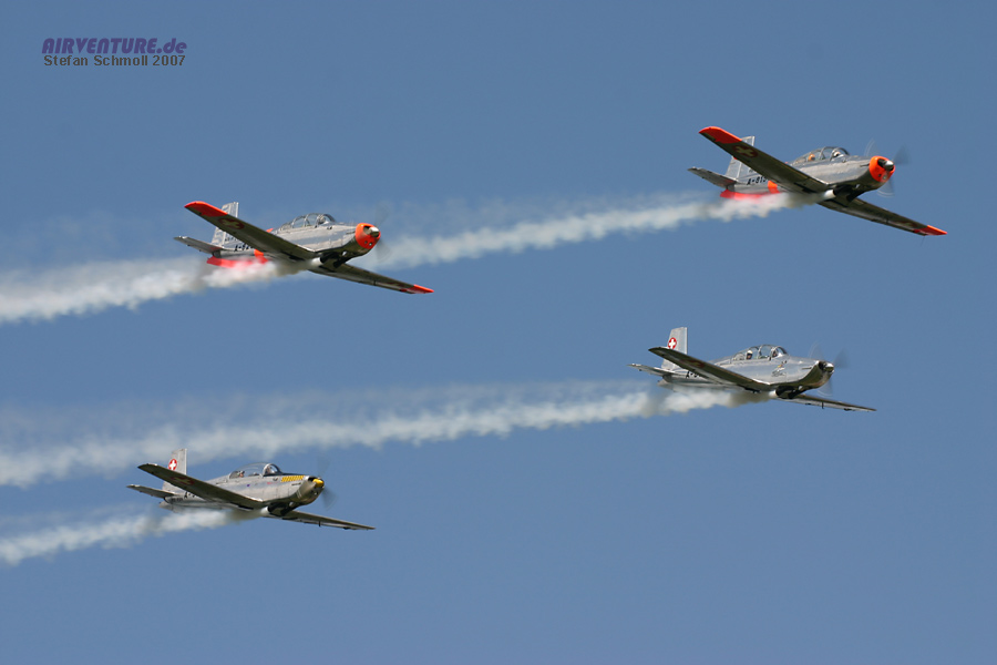 Daher fliegen noch heute einige dieser historischen Trainer. In der Schweiz gibt es sogar ein Kunstflugteam mit diesem Typ. Die P3 Flyers zeigten in Freiburg Formationsflug der Extraklasse. http://www.p3flyers.ch