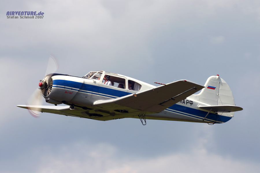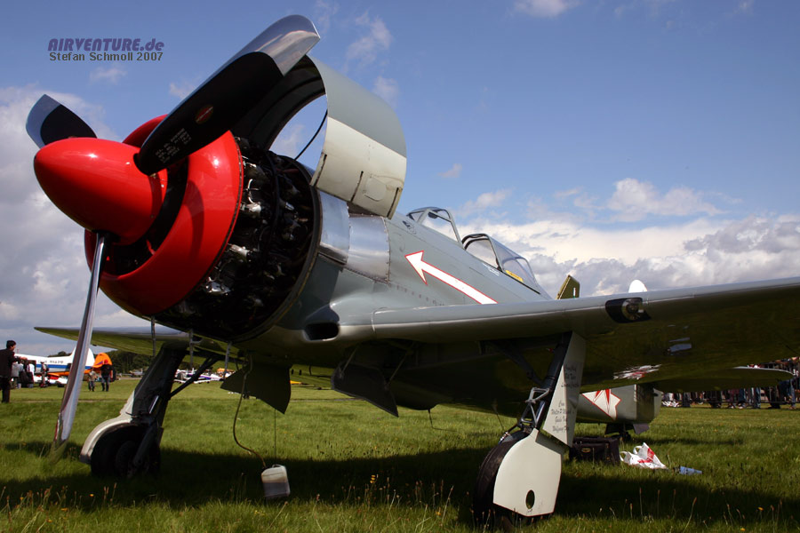 Der mächtige Pratt & Whitney R-2000 ist nur die augenfälligste Modifikation. Diese Yak verfügt über einen Flügel aus Metall und auch der hintere Bereich des Rumpfes ist im Gegensatz zu den "originalen" Yak-11 nicht stoffbespannt, sondern metallbeplankt. |