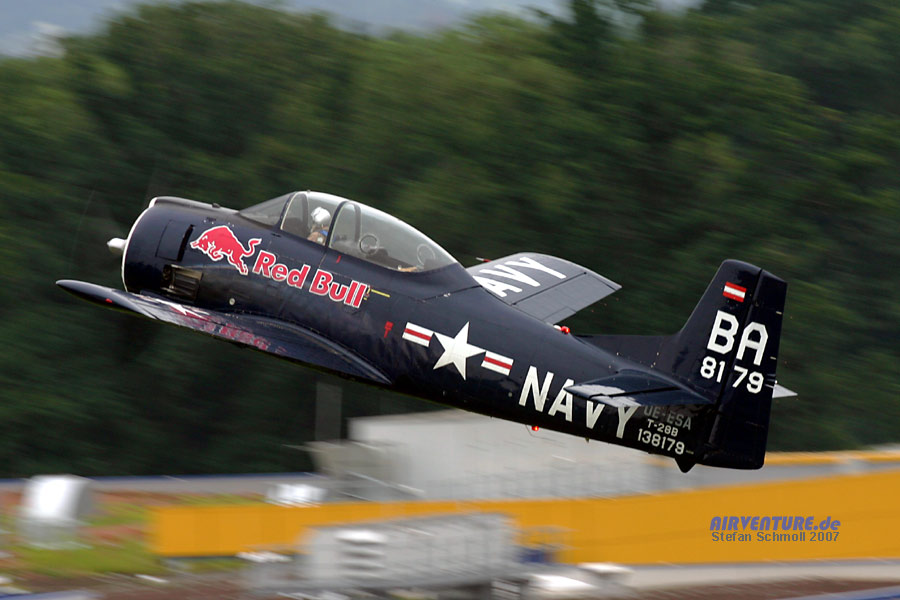 Aus Salzburg kam die North American T-28 von den Flying Bulls nach Freiburg. Dort ist eine ganze Flotte von Klassikern stationiert. Hier gehen Sponsorengelder endlich mal zu den richtigen Adressaten: www.flyingbulls.at |