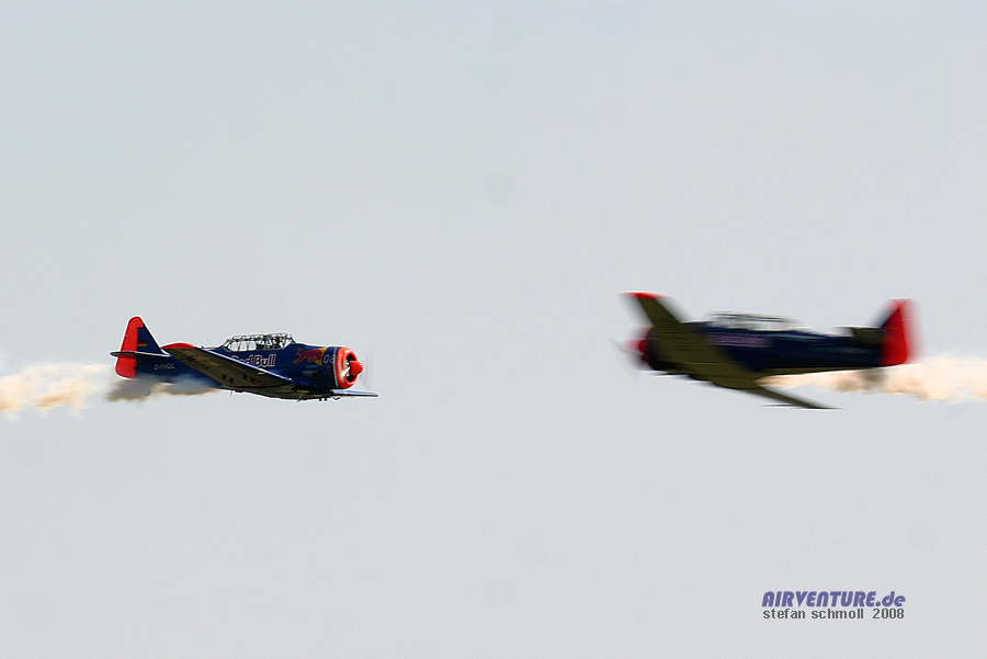 Walter und Toni Eichhorn bei der Arbeit. In Griesheim waren zahlreiche Besucher, die normalerweise nicht auf Flugveranstaltungen gehen. Und was könnte als Werbung besser sein, als so hochkarätige Vorführungen wie die des Vater-Sohn Duos mit ihren beiden North American T-6. |