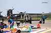 Ein Teil der Veranstaltung wurde von Modellfliegern gestaltet, ganz im Hintergrund die Ju 52. Dazwischen wird die Bücker 133 per Handkurbel angelassen. |
