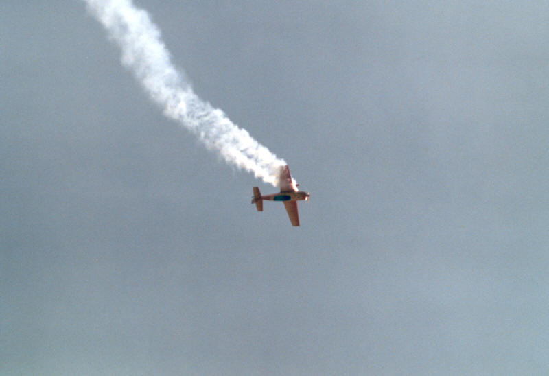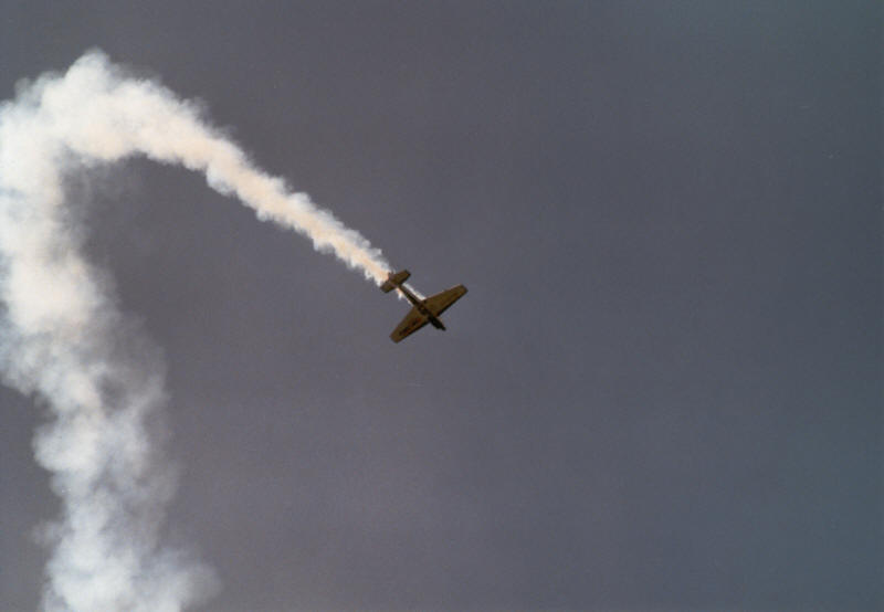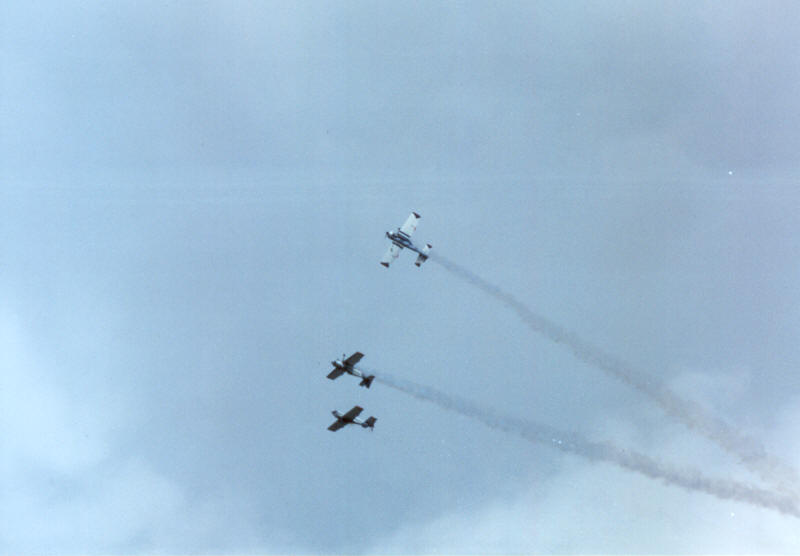 das dritte Flugzeug hinterherkommt und dabei Rollen fliegend die Rauchfahne umkreist! Die