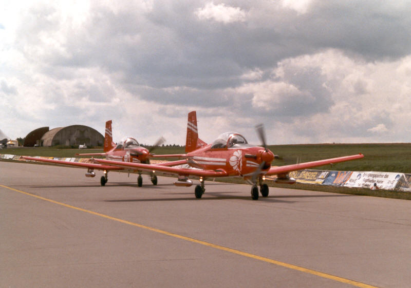 Team mit den beiden Pilatus PC-7 wieder zurück zur Parkposition, wo es von dem