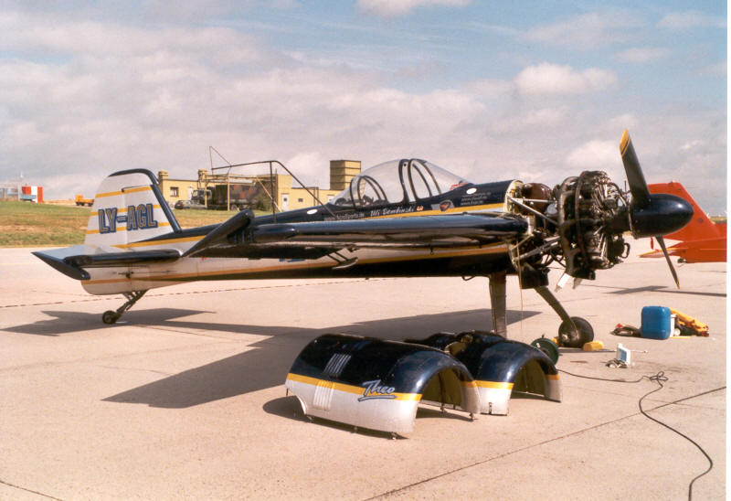 vom Typ Yakovlev Yak-55. Die äußerst robuste Yak-55 wirkt zwar von ihrer Bauart her