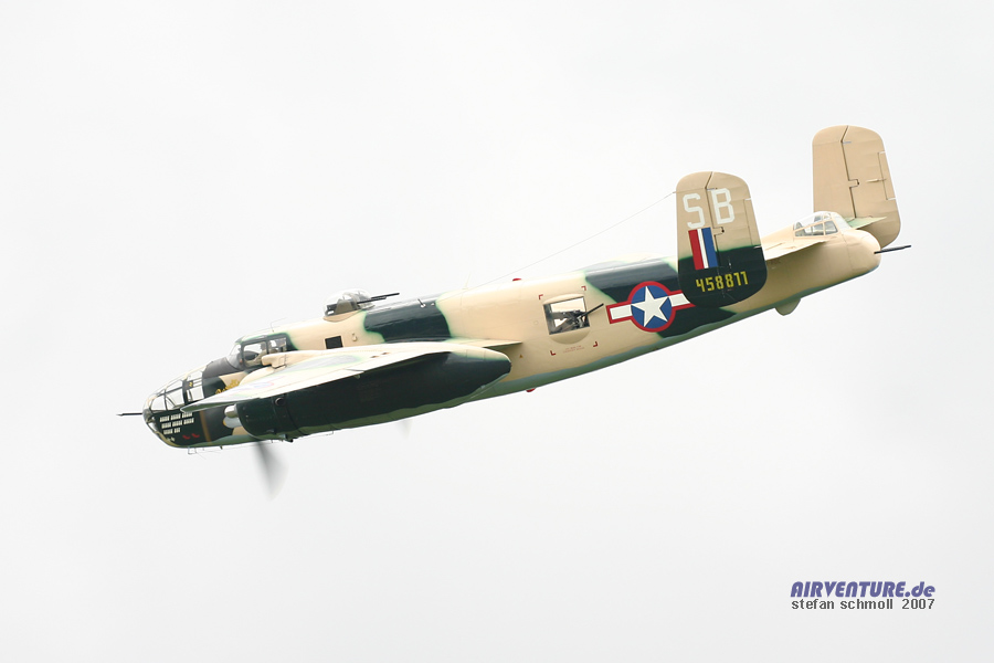 In der Luft zeigte die Mannschaft, dass man auch mit einem mittleren Bomber ein abwechslungsreiches Programm fliegen kann. Derzeit gibt es in Europa drei flugfähge Exemplare des Typs, die regelmäßig auf Airshows zu finden sind. Mehr Informationen zu dieser Maschine finden Sie unter www.jaf.ch |