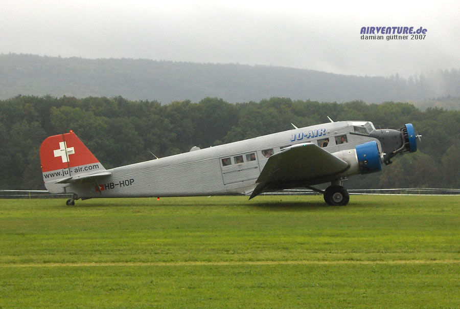 Die www.ju-air.com betreibt seit jetzt 25 Jahren die historischen Maschinen. Die drei Gründungsflugzeuge (HB-HOP, -HOS und ?HOT) wurden von der schweizer Luftwaffe übernommen, wo sie mehr als 40 Jahre im aktiven Dienst standen. |