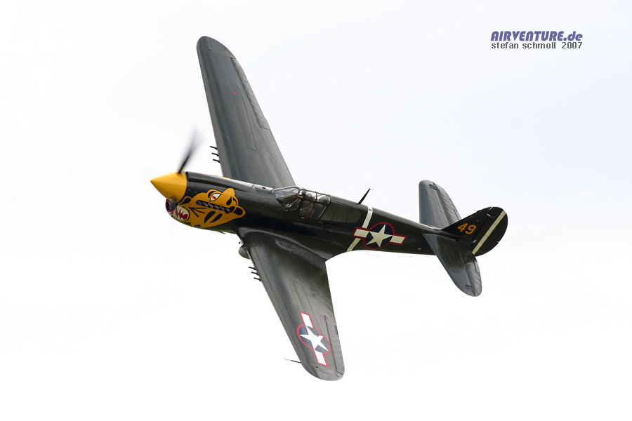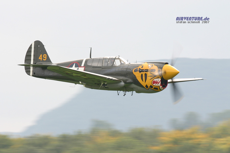 Premiere auf der Hahnweide feierte Peter Teichmann mit seiner seltenen Curtiss P-40. Die Maschine ist Teil der http://www.hangar11.co.uk/ in North Weald (nördlich von London).