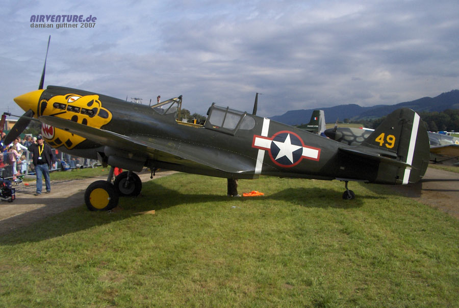 Diese P-40 kann sogar Passagiere mitnehmen. Peter Teichmann tauschte das Jagsflugzeug vor einigen Jahren mit der Fighter Collection aus Duxford gegen eine Beech Staggerwing. |