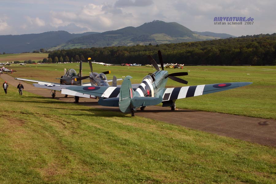 Spitfire, Mustang und Trojan sind in Frankreich stationiert. Die Zeiten, wo der europäische Warbirdfan nach England reisen muß, sind zum Glück vorbei. |