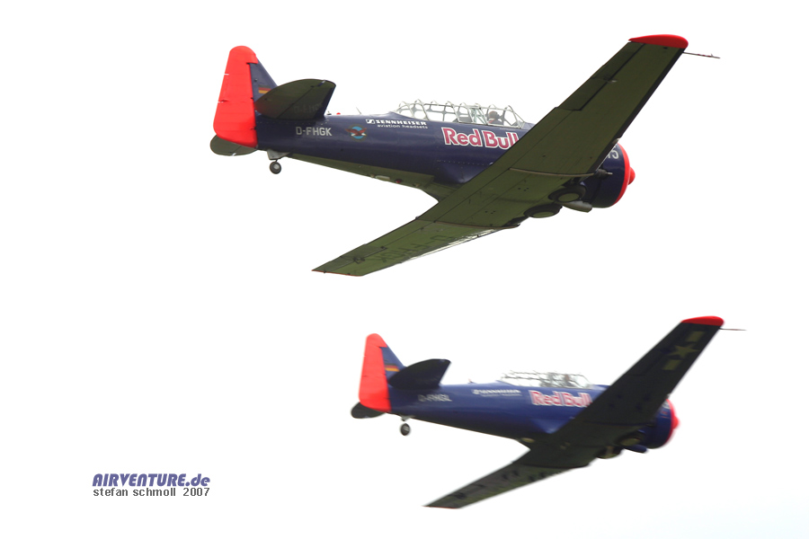 Seit vielen Jahren sind Vater und Sohn Eichhorn aus der deutschen Airshow-Szene nicht mehr wegzudenken. Mit ihren beiden Harvards sind sie Stammgäste auf der Hahnweide. |