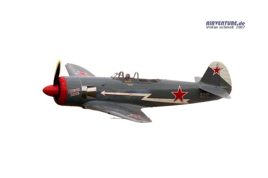 Yak-11 ist nicht gleich Yak-11. Die N11MQ von Walter Maisch aus Freiburg dürfte mit ihrem P&W R-2000 Motor wohl die schnellste in ganz Europa sein! |