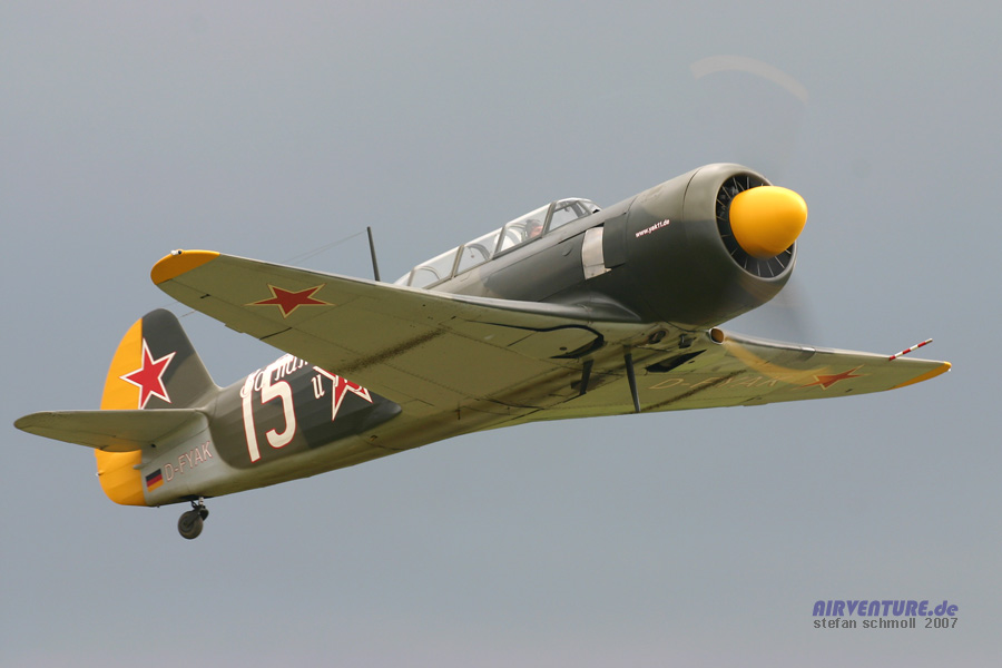 Manfred Rusche aus Hannover fliegt seine Yak-11 D-FYAK auf vielen Flugtagen im ganzen Lande vor. Sie ist die erste flugfähige zivile Yak in Deutschland gewesen. Die Premiere fand bereits 2000 auf der ILA in Berlin statt - damals allerdings noch mit britischem Kennzeichen und NVA-Lackierung. |