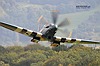Echtes Hahnweidefeeling! Die startende Spitfire XIX mit ihrem - nicht serienmäßigen - gegenläufigen Propeller steigt auf der Graspiste gleich neben den Zuschauern in den Himmel. |