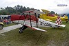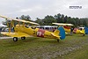 Wegen des bescheidenen Wetters fanden leider nur wenige Stearman Kaydett zum diesjährigen Oldtimertreffen. Die heute noch fliegenden Maschinen sind zumeist in den historischen gelben und blau-gelben Farben der amerikanischen Trainigseinheiten lackiert. |