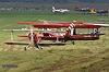 So sah der "Acker" am Sonntagvormittag aus. Der Regen forderte seinen Tribut und einige der Flieger mussten regelrecht ausgegraben werden. Hier rollen einige Teilnehmer des Doppeldeckercorso an den Start. |