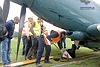Eine Schaufel gehört ja eigentlich zu den üblichen Werkzeugen. Aber an dem nassen Wochenende mussten doch einige Flieger vor der Vorführung erst einmal aus dem schlammigen Boden ausgegraben werden.