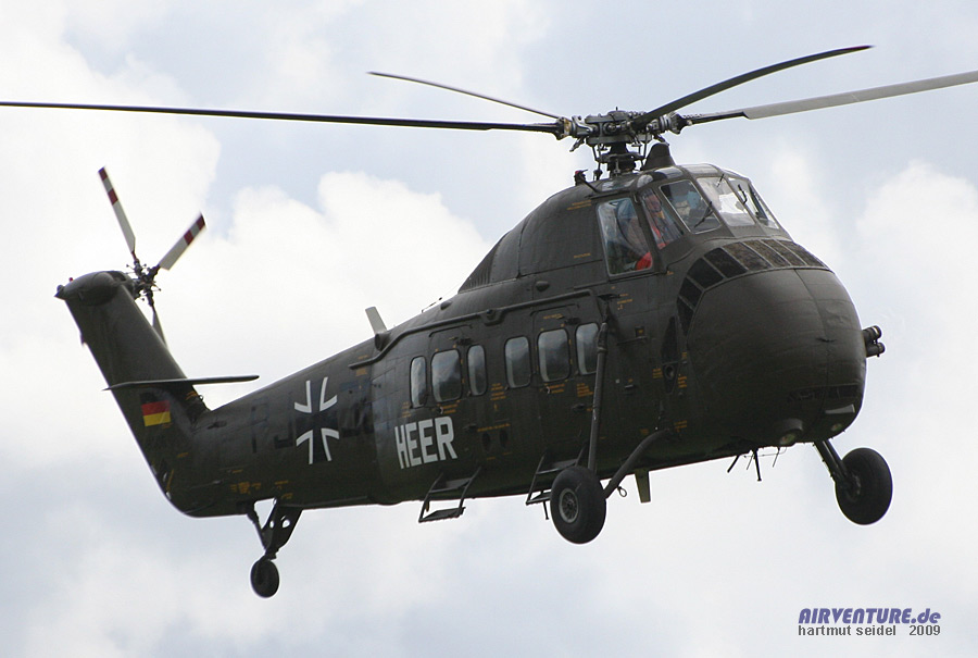 Eine ganz besondere Attraktion bei den Rundflugangeboten während der Oldtimer Fliegertreffen auf der Hahnweide ist schon traditionell die Mitflugmöglichkeit in diesem Oldtimer-Hubschrauber vom Typ Sikorsky S-58 C der Meravo-Luftreederei. Auch beim OTT 2009 war der S-58 wieder am gesamten Veranstaltungswochenende mit Rundfluggästen unterwegs. |
