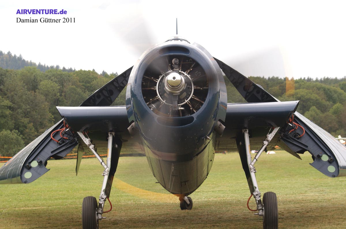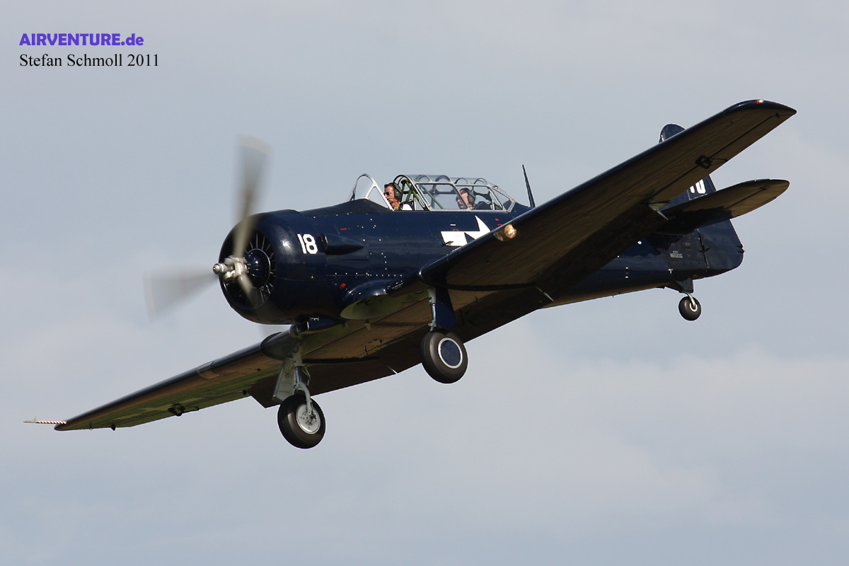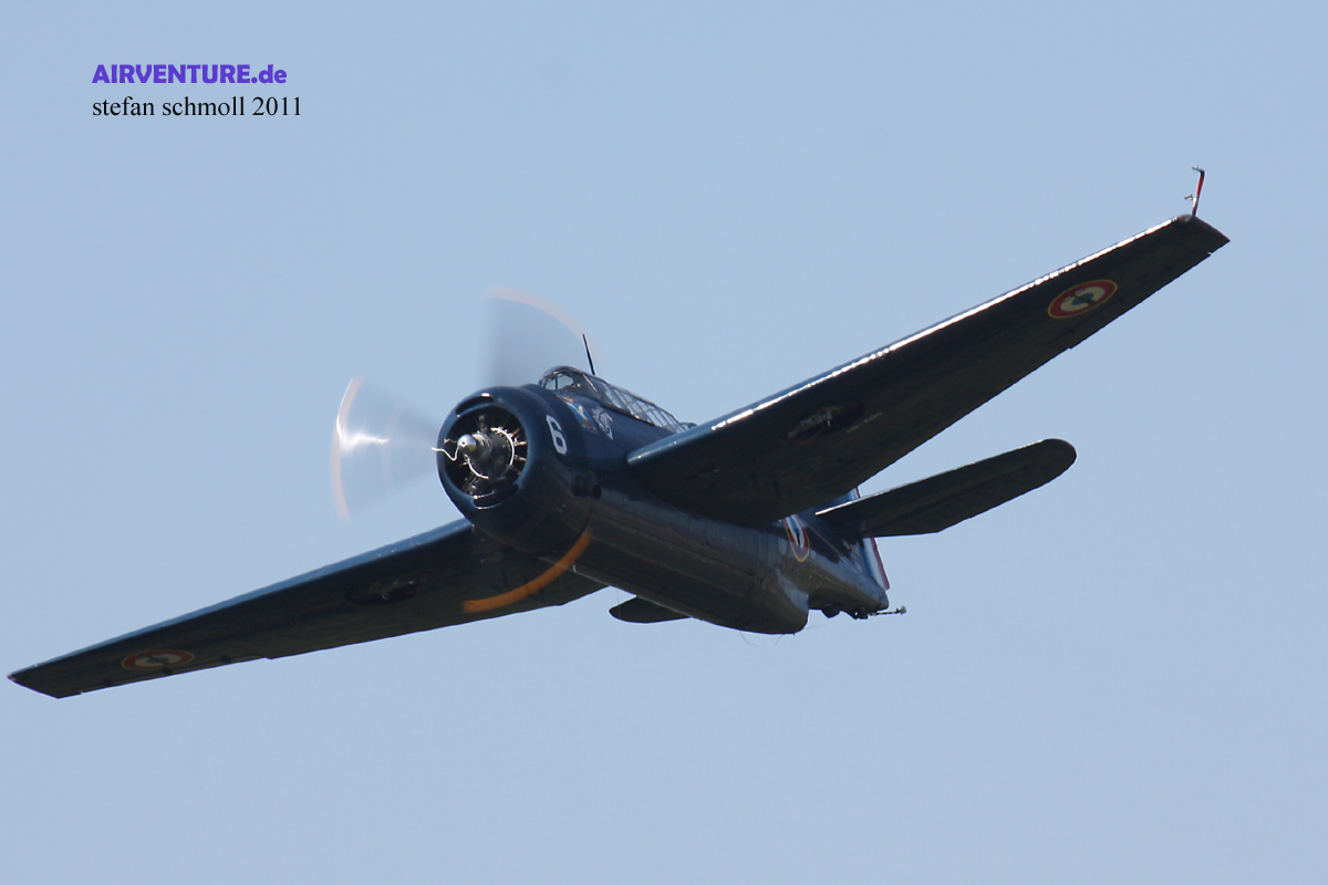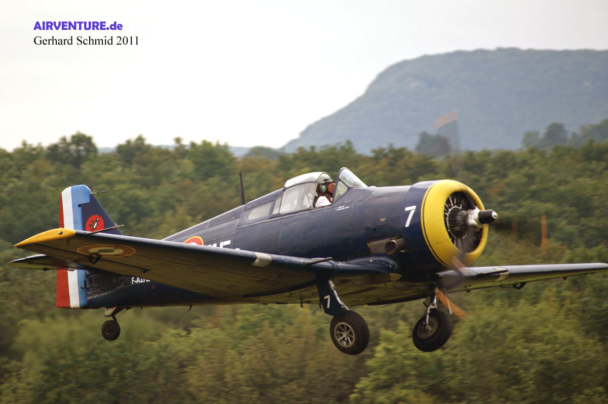 Ebenso die F-AZHD, welche früher auch schon mal als Grumman "Hellcat" unterwegs war. Gebaut wurde sie 1945 als North-American T-6G. In den achtziger Jahren erfolgte dann der Umbau in die NA-68 Konfiguration. |