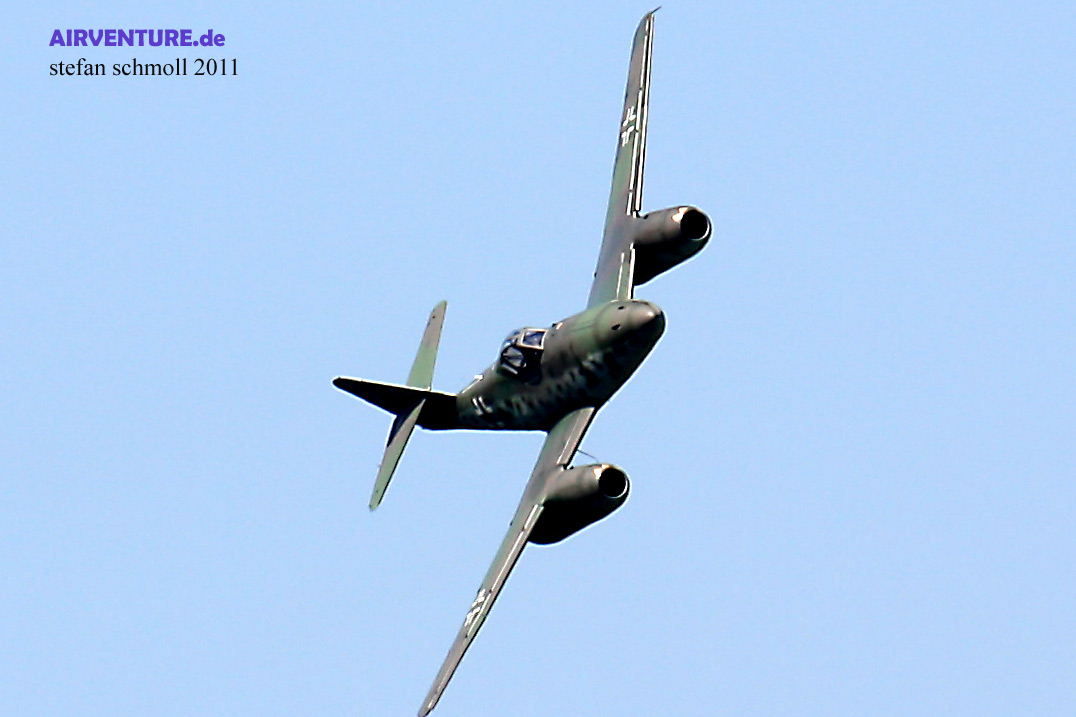 Das Beste zum Schluss - natürlich eine weitere Premiere: erstmals wurde die Messerschmitt 109 des EADS Heritage Flight von der neu gebauten Messerschmitt 262 D-IMTT begleitet. Natürlich landete sie nicht auf dem Grasplatz, aber den weltweit ersten eingesetzten Düsenjäger der Luftfahrtgeschichte live zu erleben, dass war für die Zuschauer schon großes Kino!!