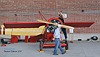 Brigitte Koch vom www.fliegendes-museum.de aus Großenhain baut mit ihrem Team den Fokker Dreidecker zusammen. Natürlich flog die DR.I aus Sachsen nicht auf die Hahnweide, sondern hat die fast 500 Kilometer auf dem Anhänger zurückgelegt. |