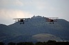 DAS war ein Hahnweidemoment für die Geschichtsbücher: Mikael Carlson mit seiner Fokker D.VII gemeinsam mit Thomas Koch im Dreidecker und im Hintergrund die Burg Teck! |