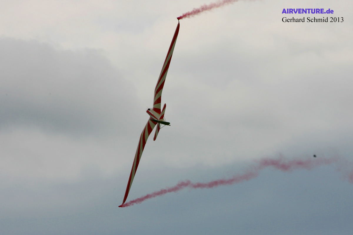 Christoph Zahn begeisterte das Publikum mit der Kunstflugvorführung seines DFS Habicht D-1901. Es handelt sich um einen Nachbau des Kunstflugseglers aus dem Jahr 1936. Hier http://www.dfs-habicht.de/ können Sie schon bald lesen, wo Sie ihn mit seiner großartigen Maschine im kommenden Jahr bewundern können.