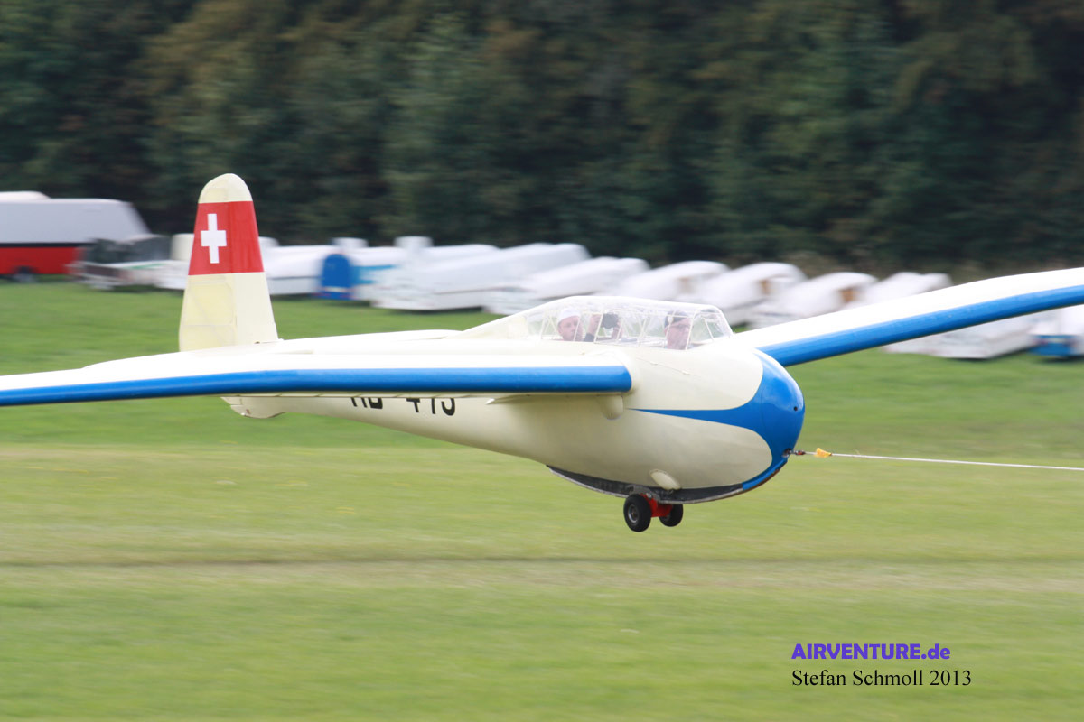 In diesem Jahr wurden auf der Hahnweide endlich wieder mehrere historische Segelflugzeuge im Flug gezeigt. Stilecht wurden diese natürlich auch von Oldtimern wie der Udet Flamingo in die Luft geschleppt. |