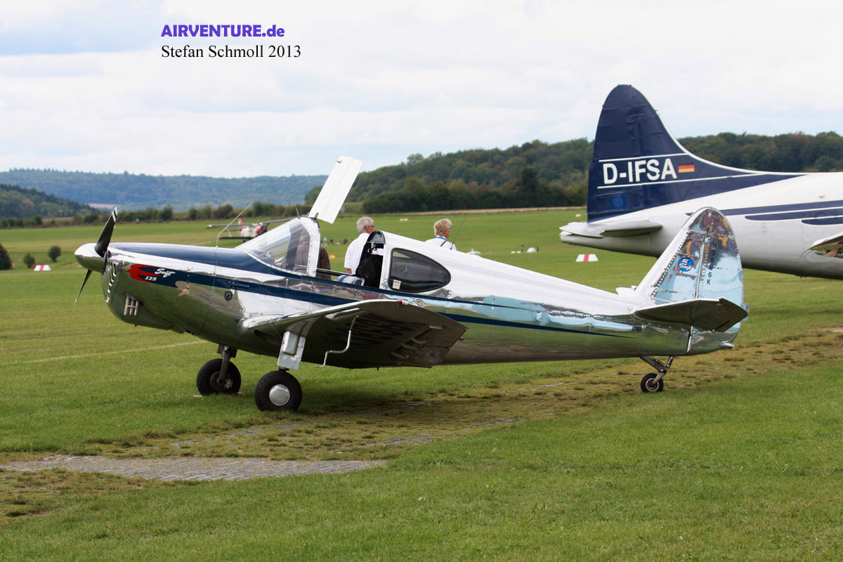 Die www.Quax-Flieger.de aus Paderborn reisten in diesem Jahr nicht in offenen Doppeldeckern, sondern mit polierten amerikanischen Klassikern aus den fünfziger Jahren auf die Hahnweide. Die Globe Swift flog erstmals 1946 und mehr als 1500 Exemplaren des eleganten Doppelsitzers mit Einziehfahrwerk wurden gebaut. In Europa ist sie jedoch eine Rarität.