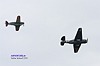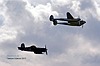 Schönes Formationsdisplay der P-51 D Mustang und der P-40 N aus Frankreich. Die P-40 hat Markierungen von lt. Robert Warren, einem Piloten aus dem Pazifik Einsatzgebiet. Die P-51 hat Markierungen von Leonard "Kid" Carson von der 362 Sqdn, der 8. Air Force. Kid Carson beendete den Krieg mit 18,5 Abschüssen.
