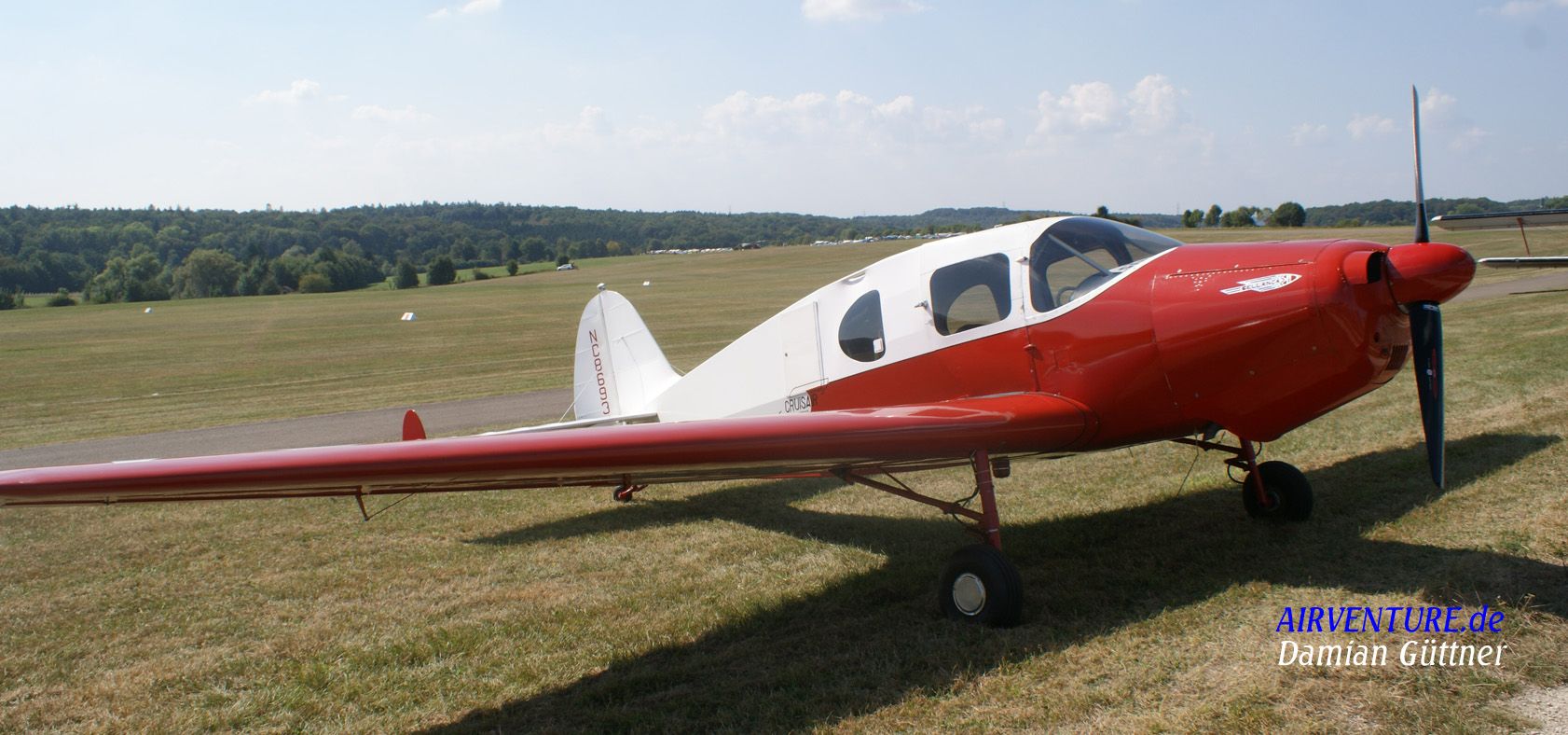 Landung einer Temco GC 1 B Swift, Bj. 1948 aus Salzburg. Es ist eine Reise- und Sportmaschine, ausgerüstet mit einem 145 PS Continental O-300 Triebwerk. Dieser Typ, eigentlich Glob Swift, wurde in Lizenz bei Texas Engineering and Manufacturing Corporation (TEMCO) produziert, da anfangs große Nachfrage bestand. Der Einbruch der Nachfrage Ende der 40er Jahre bedeutete das Ende der Firma Globe.