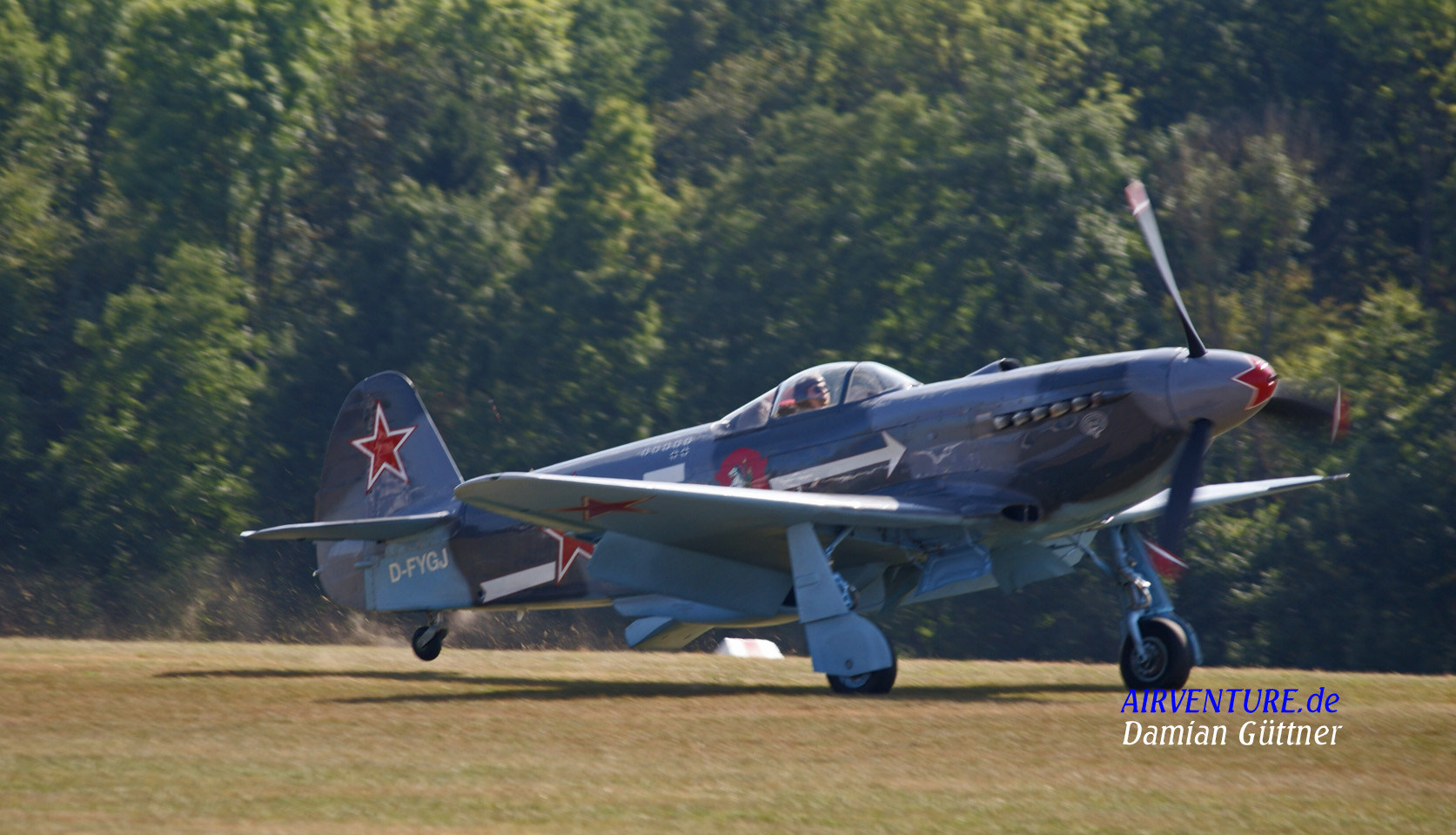Ankunft der Jak 3 UM aus Bremgarten auf der Hahnweide. Diese Maschine wurde 1992 aus Orginalteilen im Flugzeugwerk in Orenburg, in Russland gebaut. Da es leider keinen orginalen Klimov WK 105 PF - 2 mehr gab, wurde ein amerikanisches Allison V-1710 mit 1240 PS eingebaut .In den nächsten zwei Tagen wurde die Maschine mehrere Male gekonnt und rasant vorgeführt.