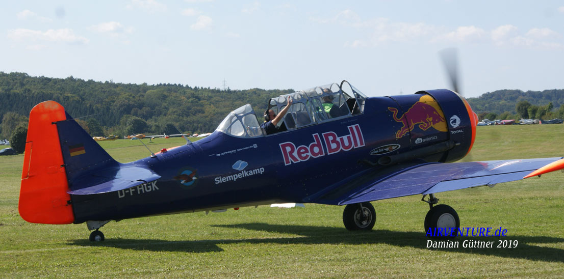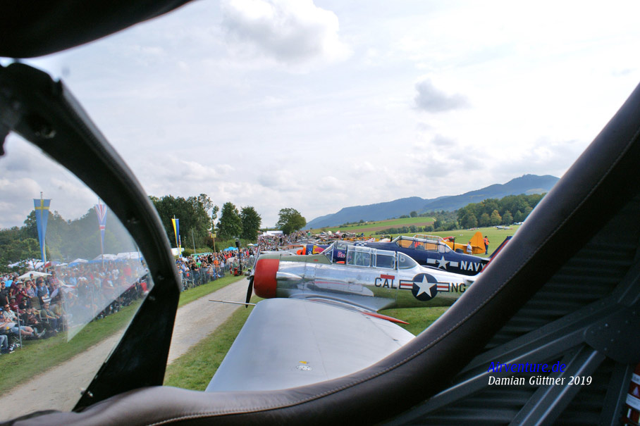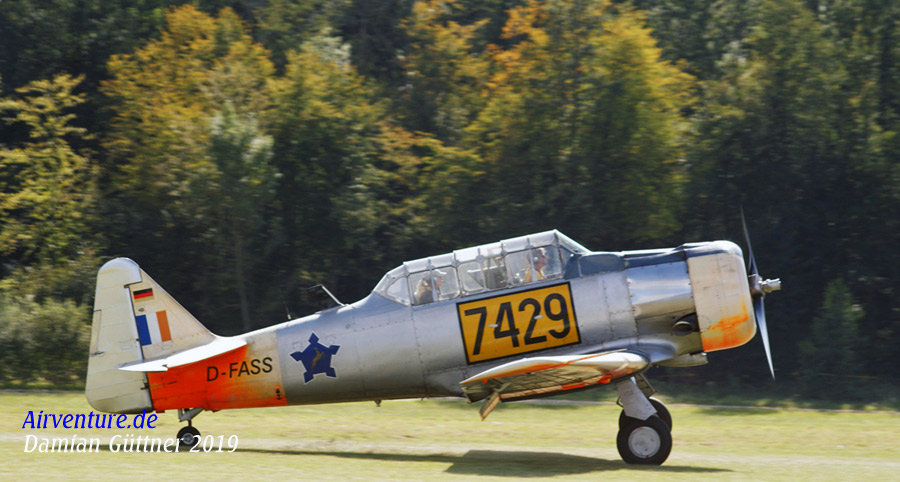 Das Urgestein der deutschen Air Show Szene dafür natürlich nicht fehlen. Walter Eichhorn mit seiner T-6 gehört seit Jahren zur Hahnweide Inventar. Im zarten Alter von 83 Jahren hat man dem Walter einen Sicherheitspiloten als Backseater verpasst.