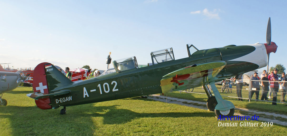 Die in den Farben des Pilatus P-2 Prototyps lackierte D-EGAW gehört den Quax-Fliegern und ist am Paderborn-Lippstadt Airport beheimatet.