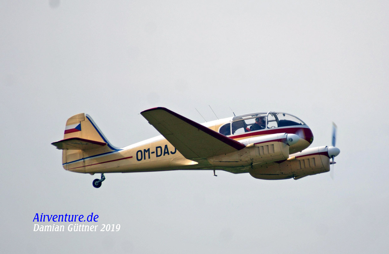 Eine der wenigen 2 - Mots auf der Hahnweide ist diese schöne Aero 145 Bj. 1959, stationiert in Podhoramy, unweit von Prag. Angetrieben wird dieser Typ von zwei LOM M 332 mit je 140 PS Leistung. Es ist eine von vermutlich noch 3 flugfähigen Maschinen weltweit.