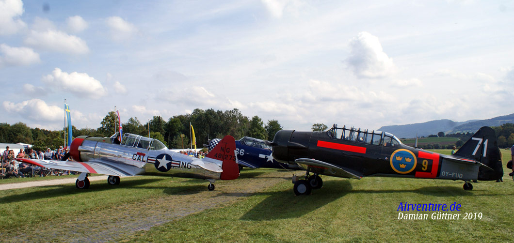 T-6 Parkplatz auf der Hahnweide! Dieses Mal waren fünf T-6 angemeldet, die auch alle da waren. Viele schöne Lackierungen und Tarnmuster für die Fotografen.