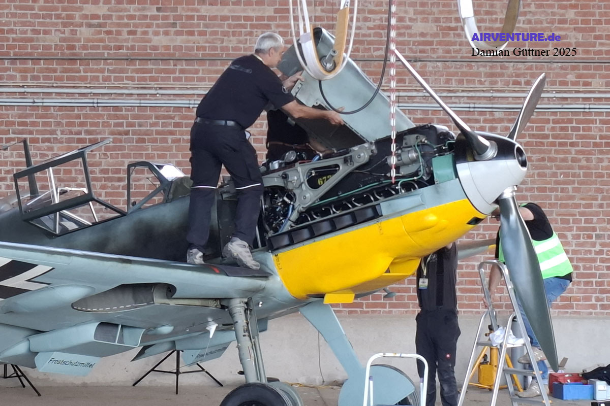 Angetrieben wird sie von einem DB601N, derzeit dem einzigen laufenden Motor dieser Art in einer aktiven Messerschmitt 109. Die späteren Versionen erhielten den DB 605. |