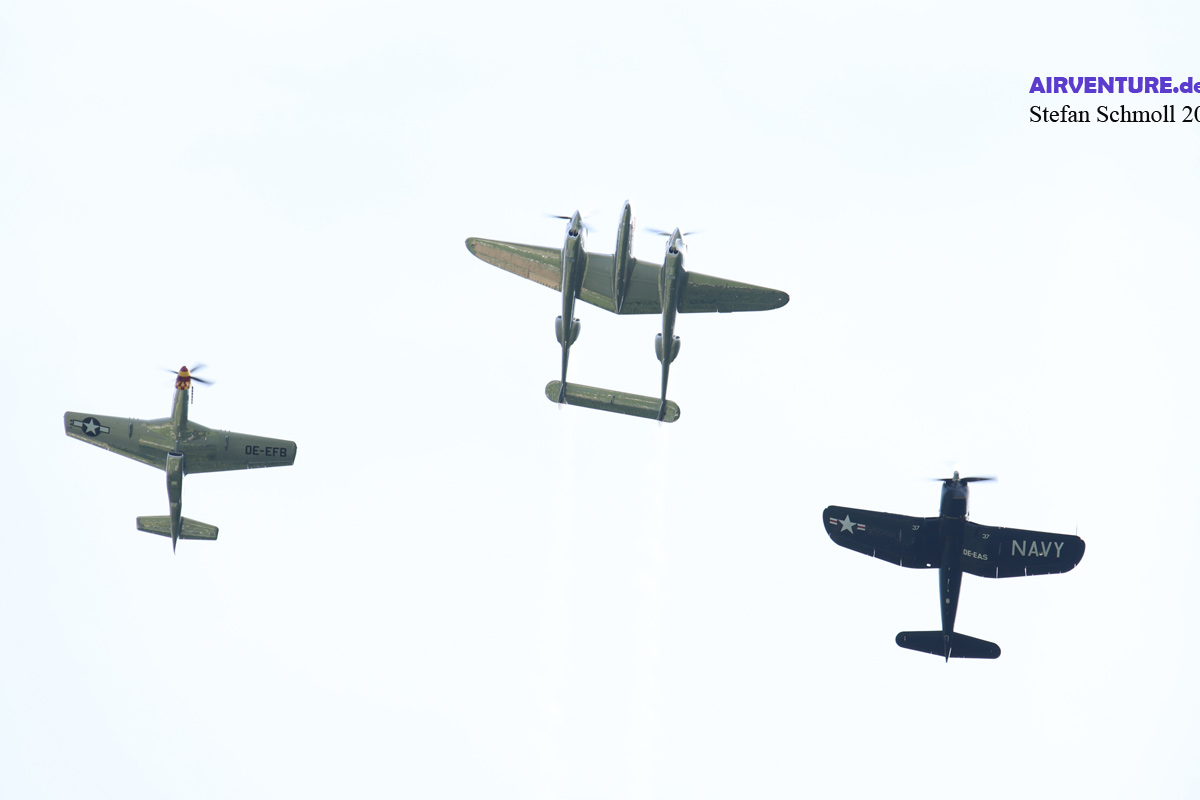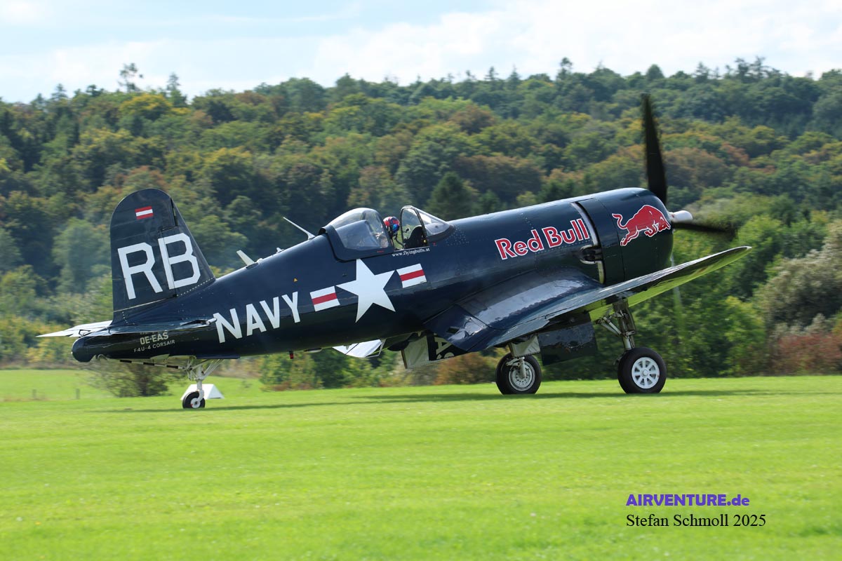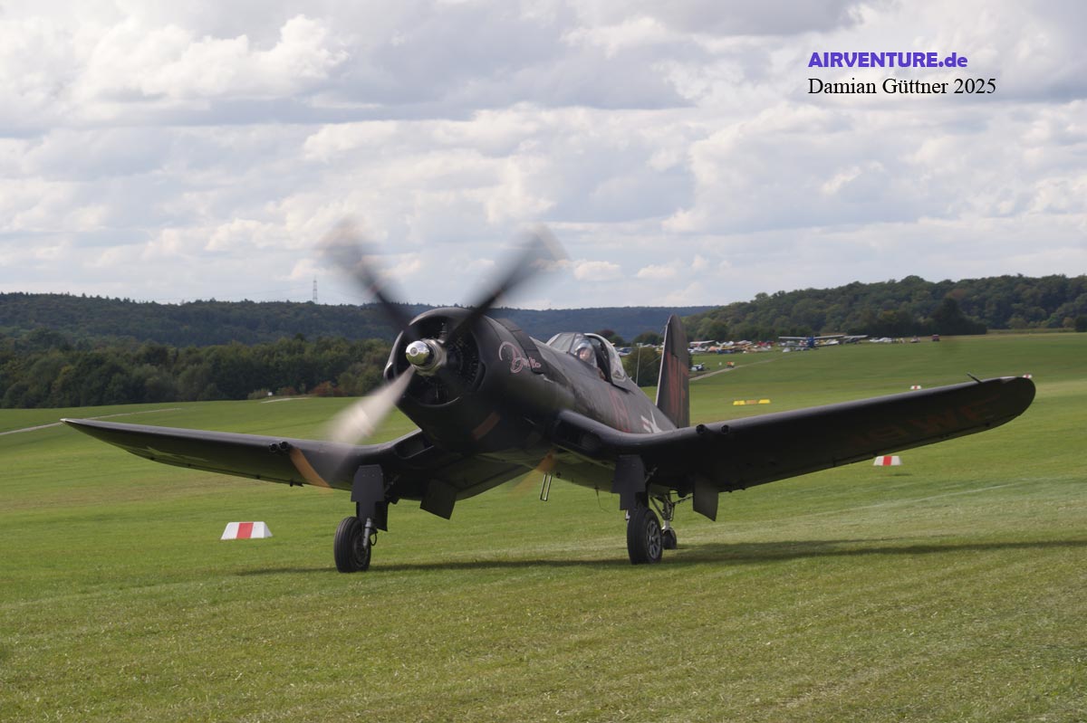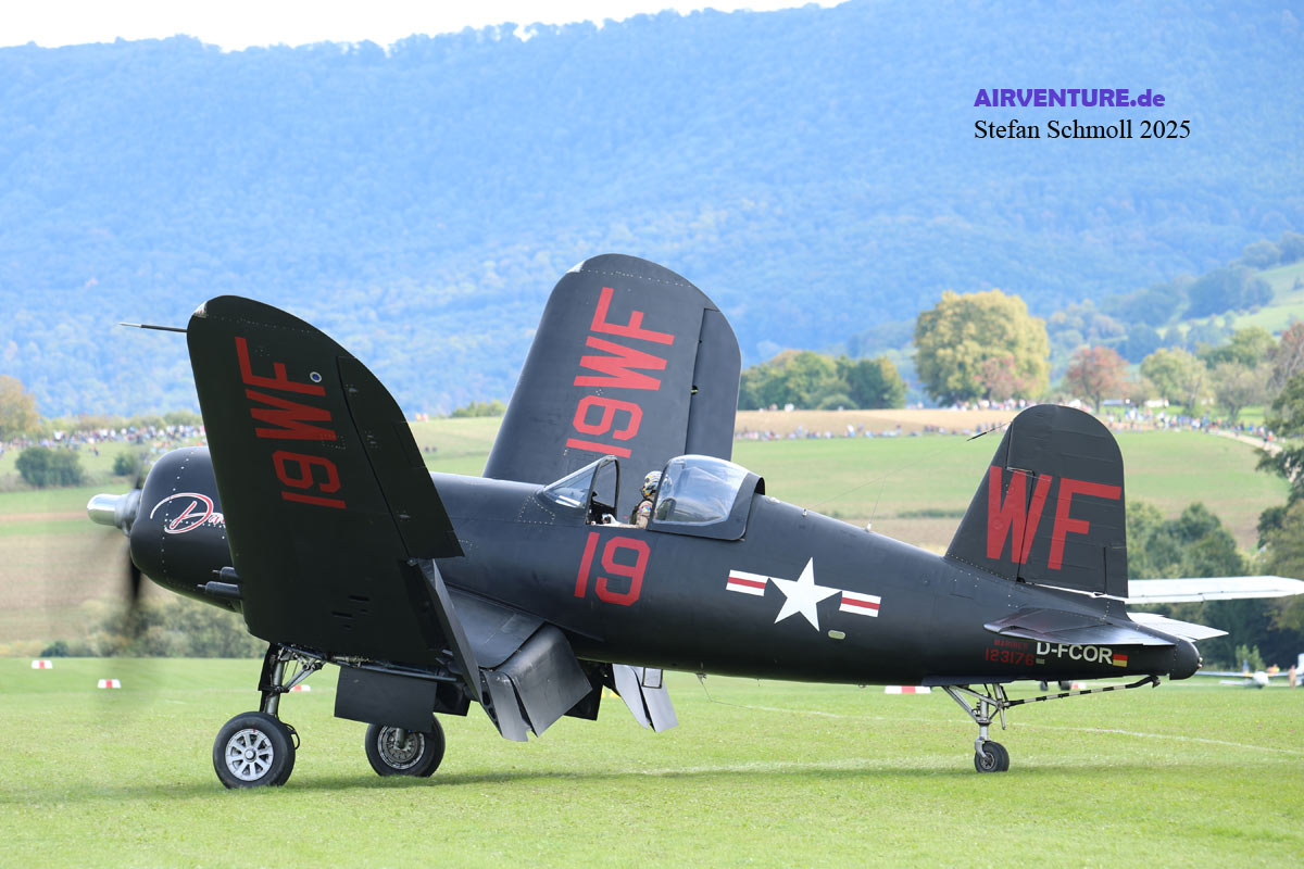 Neben der Vought Corsair aus Salzburg brachte Georg Raab seine "Devotion" vom Siegerland Flughafen mit auf die Hahnweide. Selbstverständlich ließ er es sich nicht nehmen, mit der gesamten Flotte seiner "Flying-Legends" Sammlung anzureisen. |