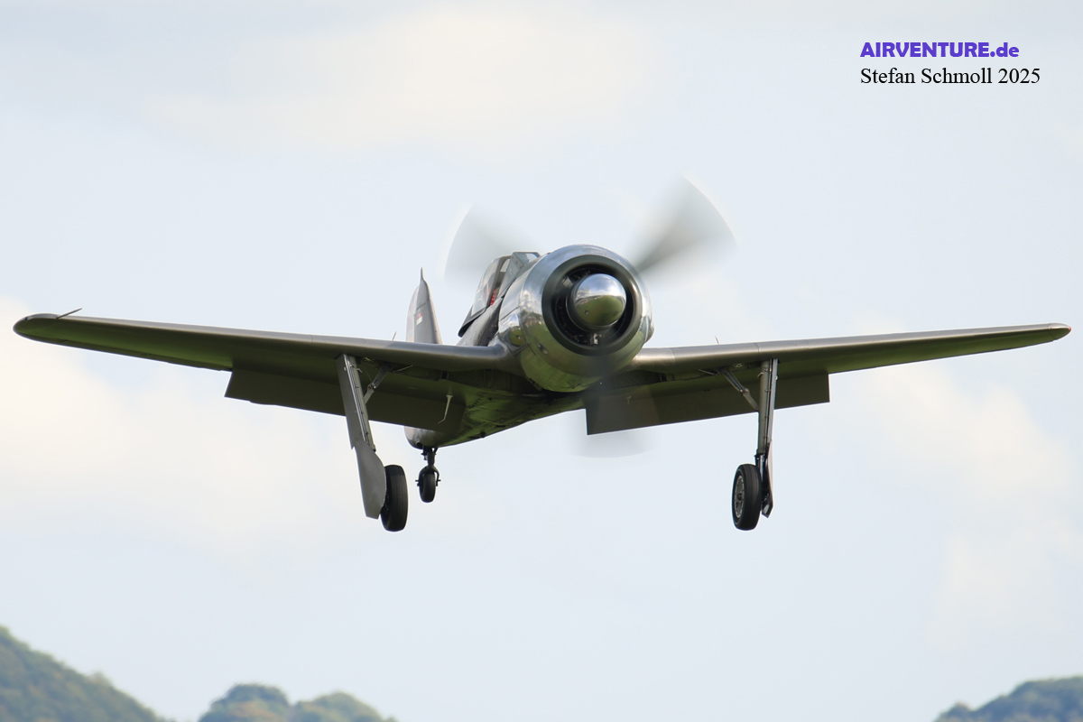 Pilotiert wurde der Würger von Klaus Plasa. Leider ab es an dem Wochenende ein Problem mit dem Fahrwerk und so konnte er kein offizielles Display fliegen - aber sind wir ehrlich: Ein langsamer Überflug dieser Schönheit mit ausgefahrenem Fahrwerk war auch bereits spektakulär genug. |