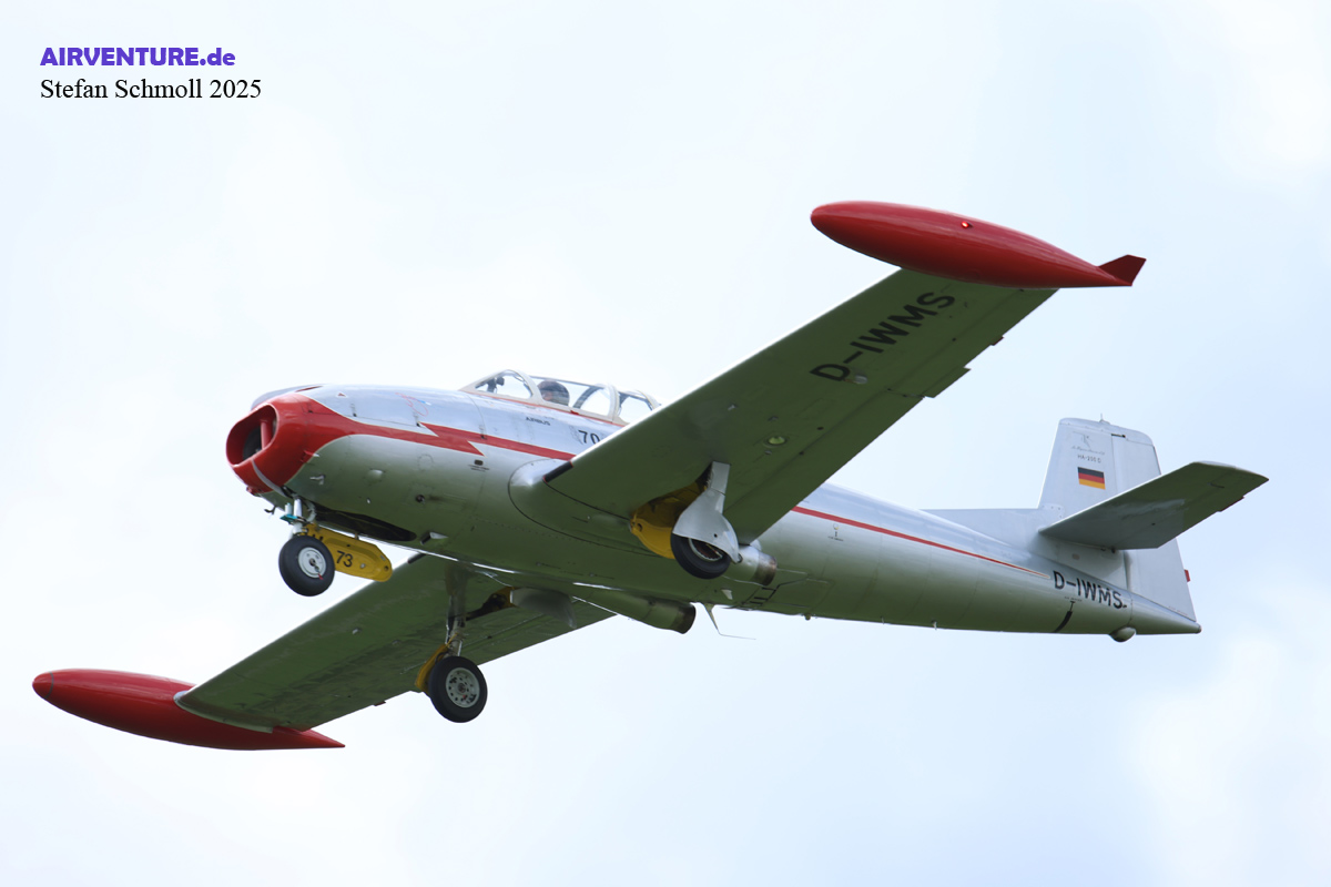 ... Auf der Hahnweide 2025 war jedoch ein weiterer historischer Jet der Partner der Schwalbe. Und auch die Hispano HA-200 Saeta passt zur Stiftung. Schließlich wurde der spanische Trainer Mitte der 1950er Jahre unter Leitung von Willy Messerschmitt konstruiert. |