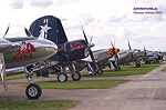 Ein derartiges Line-Up gab es in diesem Jahr deutschlandweit nur auf der Hahnweide, rund ein Dutzend High-End Warbirds begeisterten die Zuschauer. Es waren derart viele Highlights, dass die meisten der angereisten North-American T-6 erstmals auf der anderen Seite des Geländes geparkt wurden. |