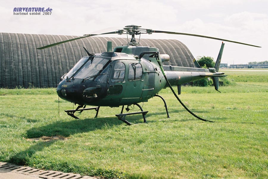 Die Dänischen Luftstreitkräfte waren mit zwei Hubschraubern vom Typ Aérospatiale ( jetzt Eurocopter ) AS 550 Fennec im Static Display der Belgian Helidays 2007 vertreten. Dieser Fennec hier wurde zum Absetzen von Spezialeinheiten mit zwei dicken Tauen ausgestattet, an denen sich die Soldaten bei einem Einsatz im "fast roping"-Verfahren abseilen können.