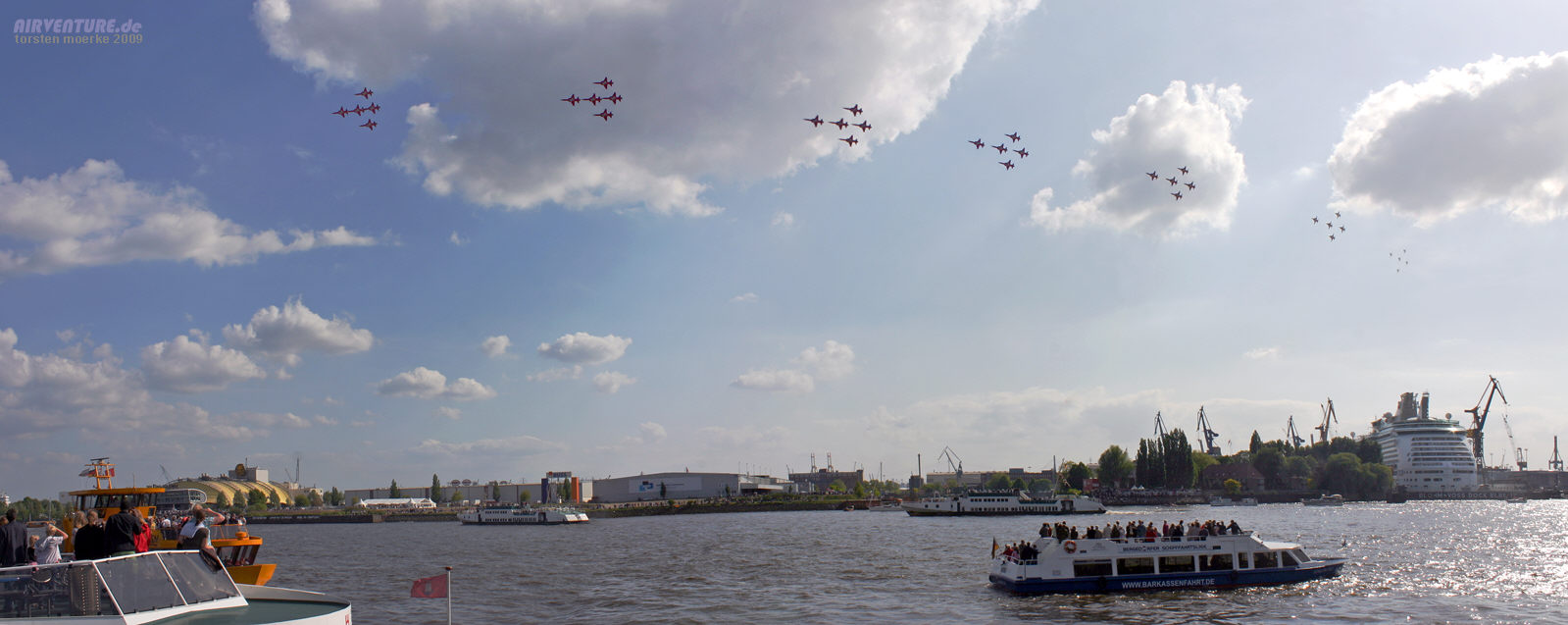 Das Flugprogramm wurde speziell für den Besuch in Hamburg angepasst, um den strengen Deutschen Sicherheitsvorschriften zu genügen. Es war in etwa mit dem Deutschland Programm, wie es auf der ILA gezeigt wird, zu vergleichen. |